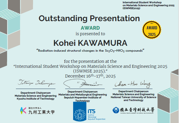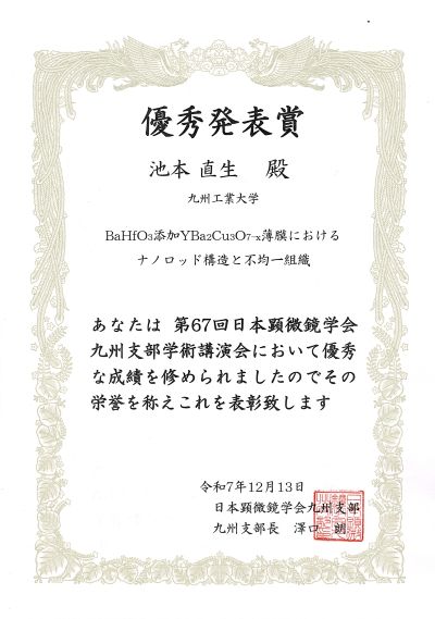 Techniques”, Kitakyushu, Fukuoka (November 10-12, 2025). - Effect of BaHfO3 concentration on the microstructure of YBa2Cu3O7-x thin films (Poster)